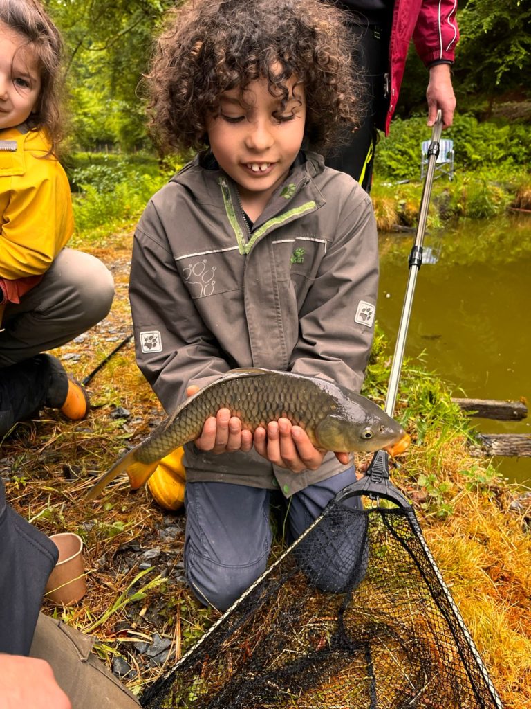 Unser Jungangler Adrian mit seinem wohlverdienten Fang des Tages.