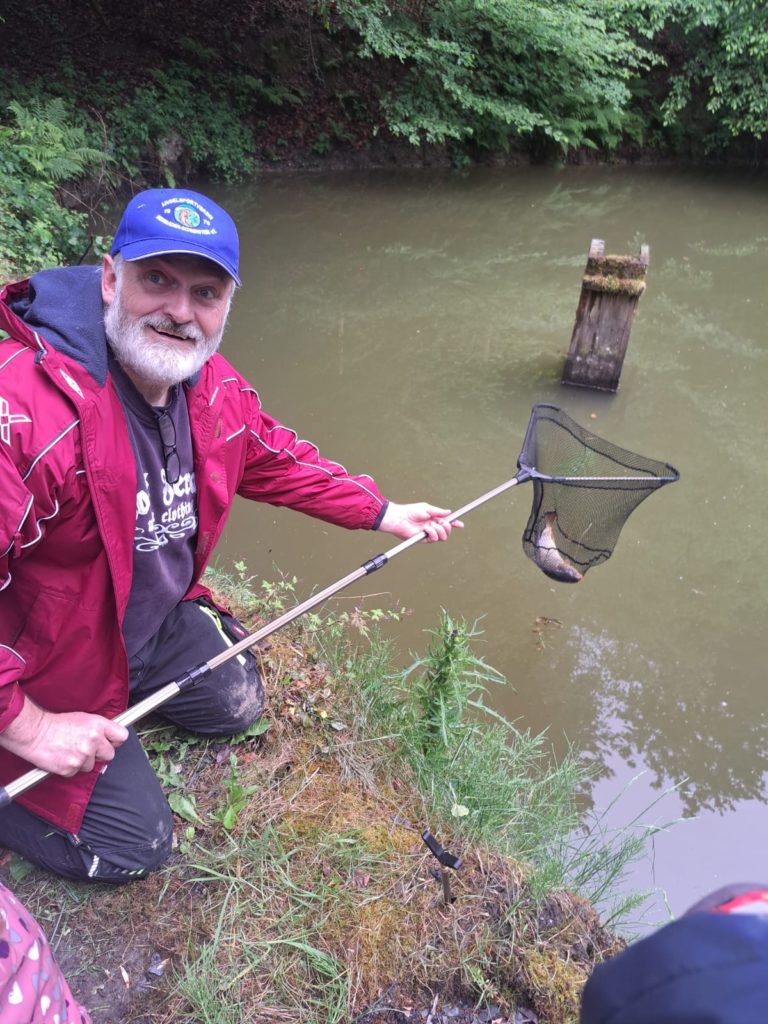 Hocherfreut konnte unser Neueinsteiger Markus, nach kurzer Einweisung auch seinen ersten Karpfen landen.